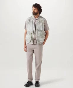 Belstaff Men’s Riverbed Camo Ripstop Hithe Gilet In Stone Beige | Stonebeige | Men’s Coats & Jackets