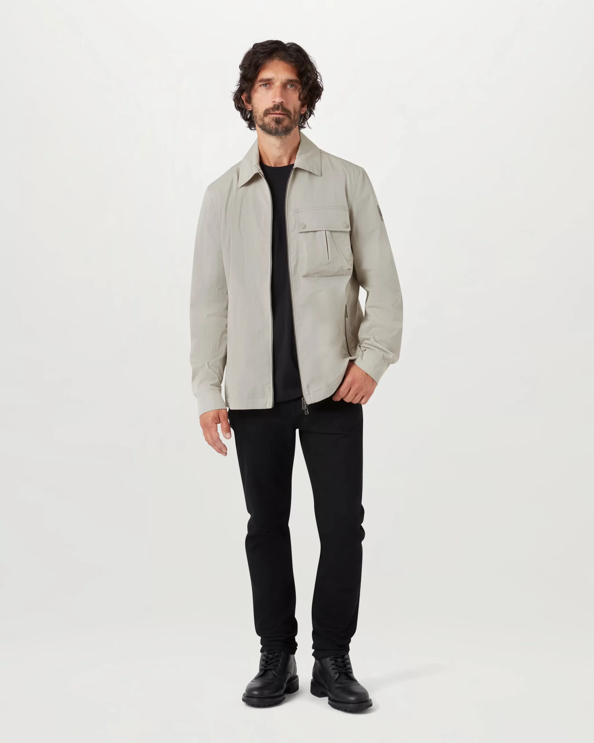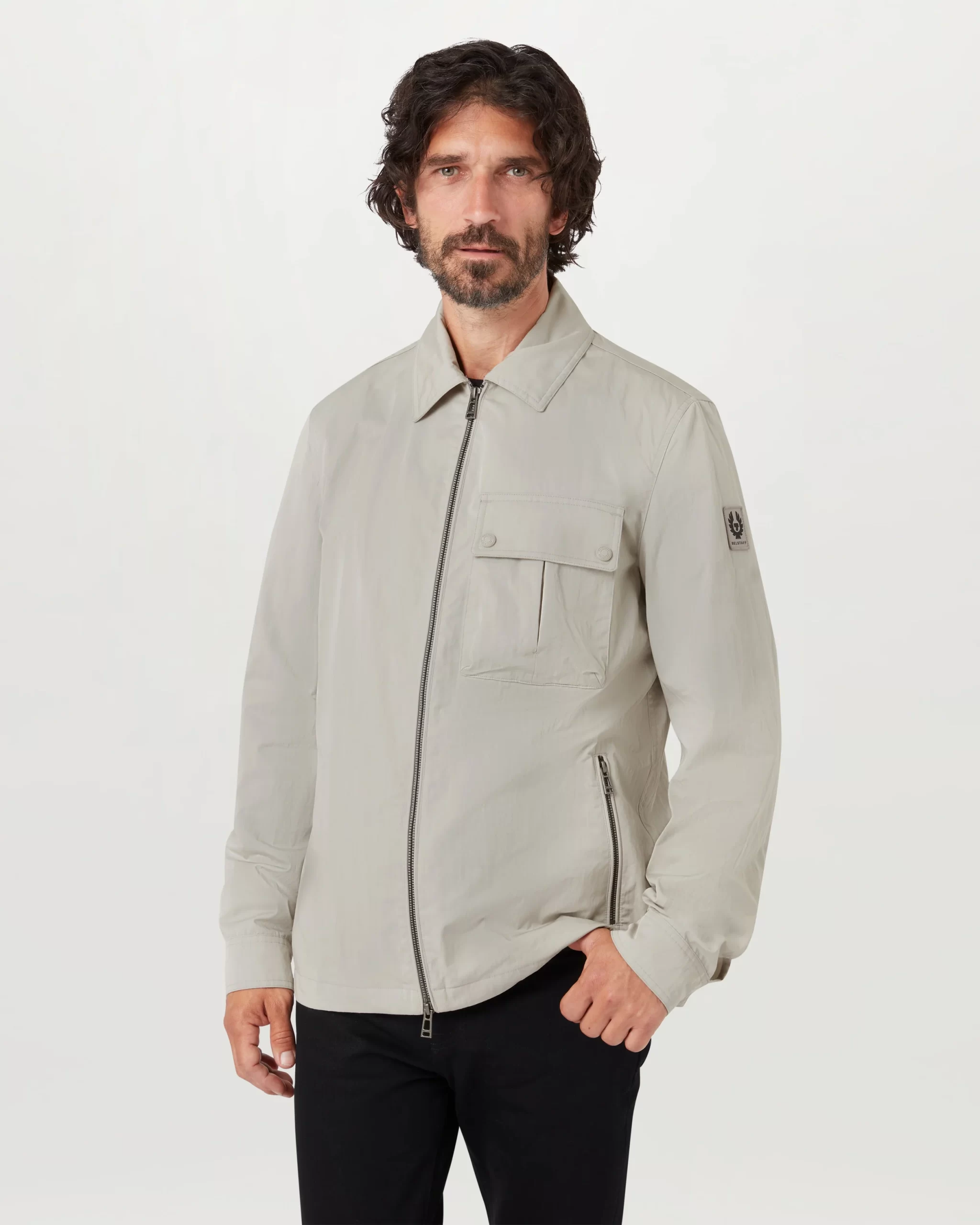 One bellowed, pleated chest pocket