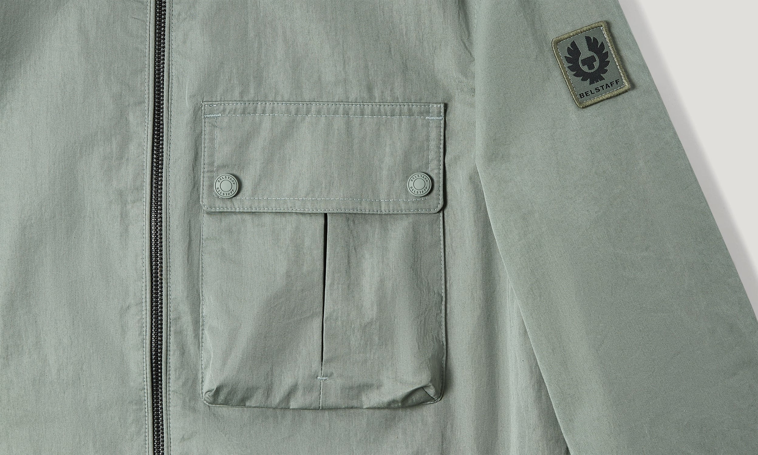 One bellowed, pleated chest pocket