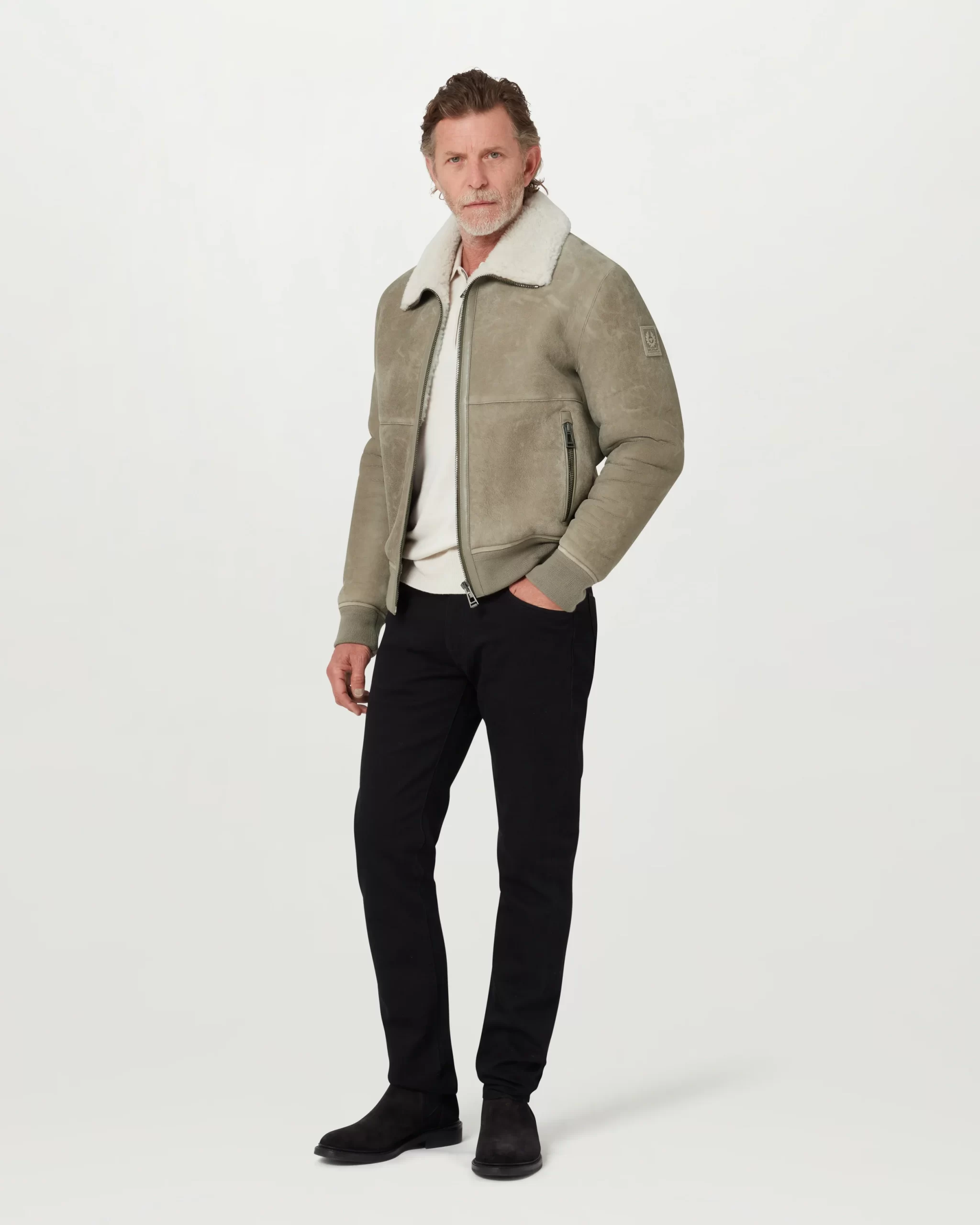 Tonal leather Belstaff phoenix patch on left sleeve