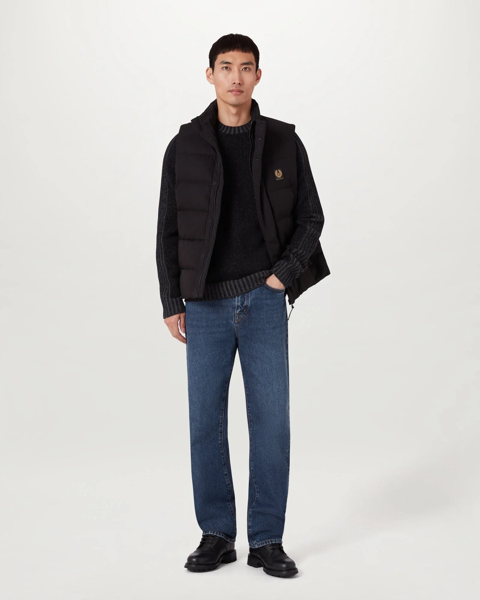 Classic 5-pocket design with angled coin pocket