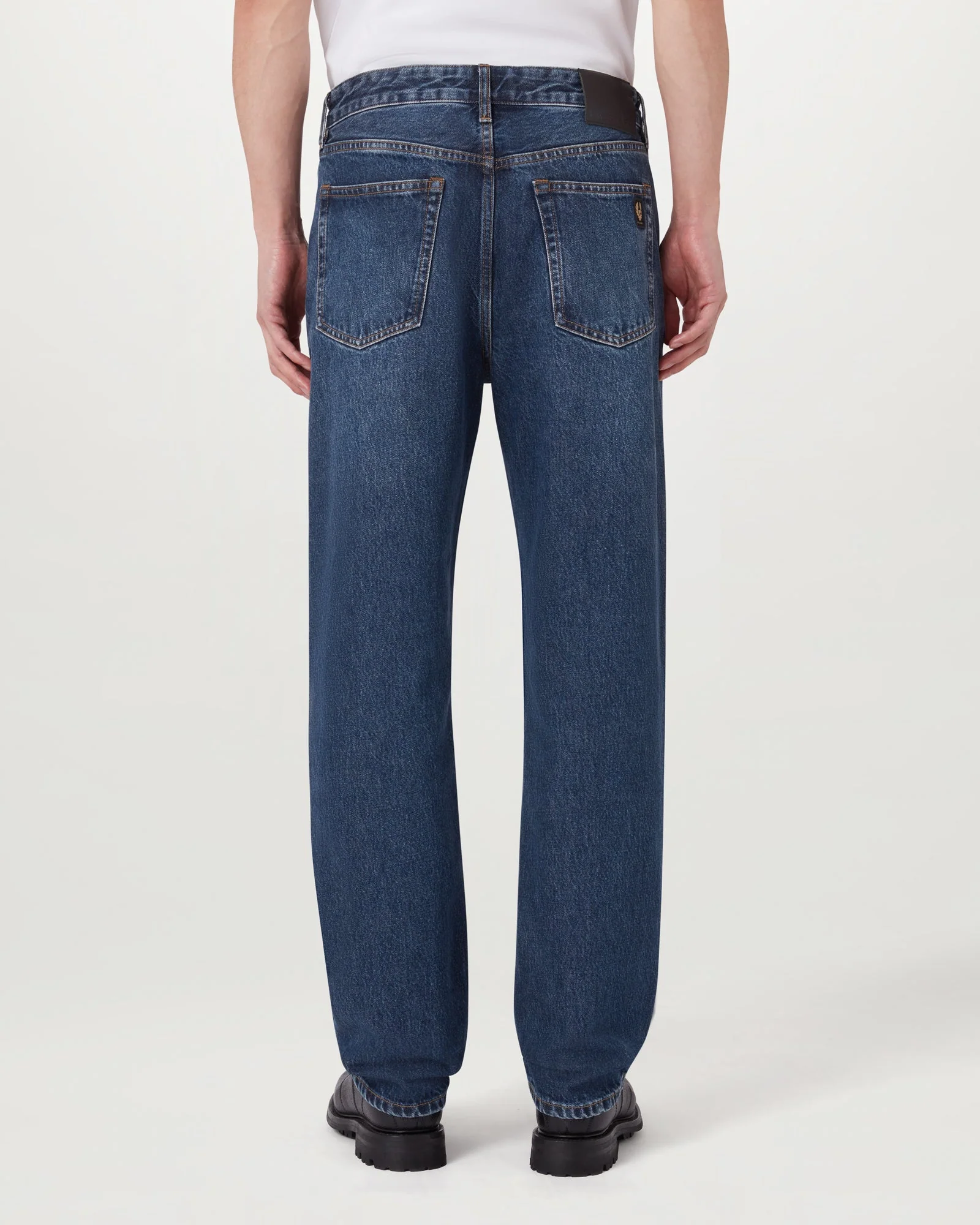 Direct embroidered branded patch on rear pocket