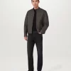 Centre front zip fastening with snap closure at neck