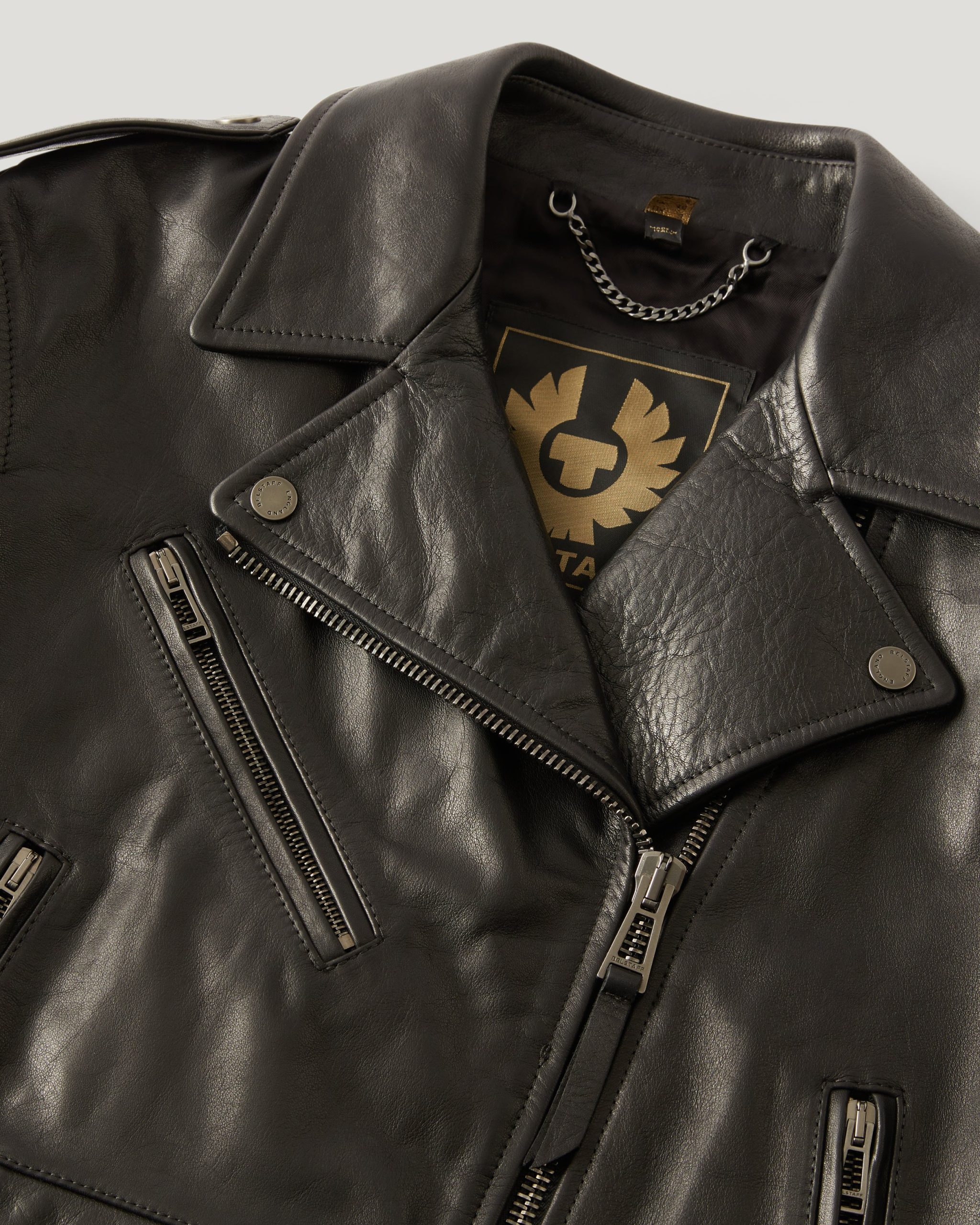 Leather logo patch on the sleeve