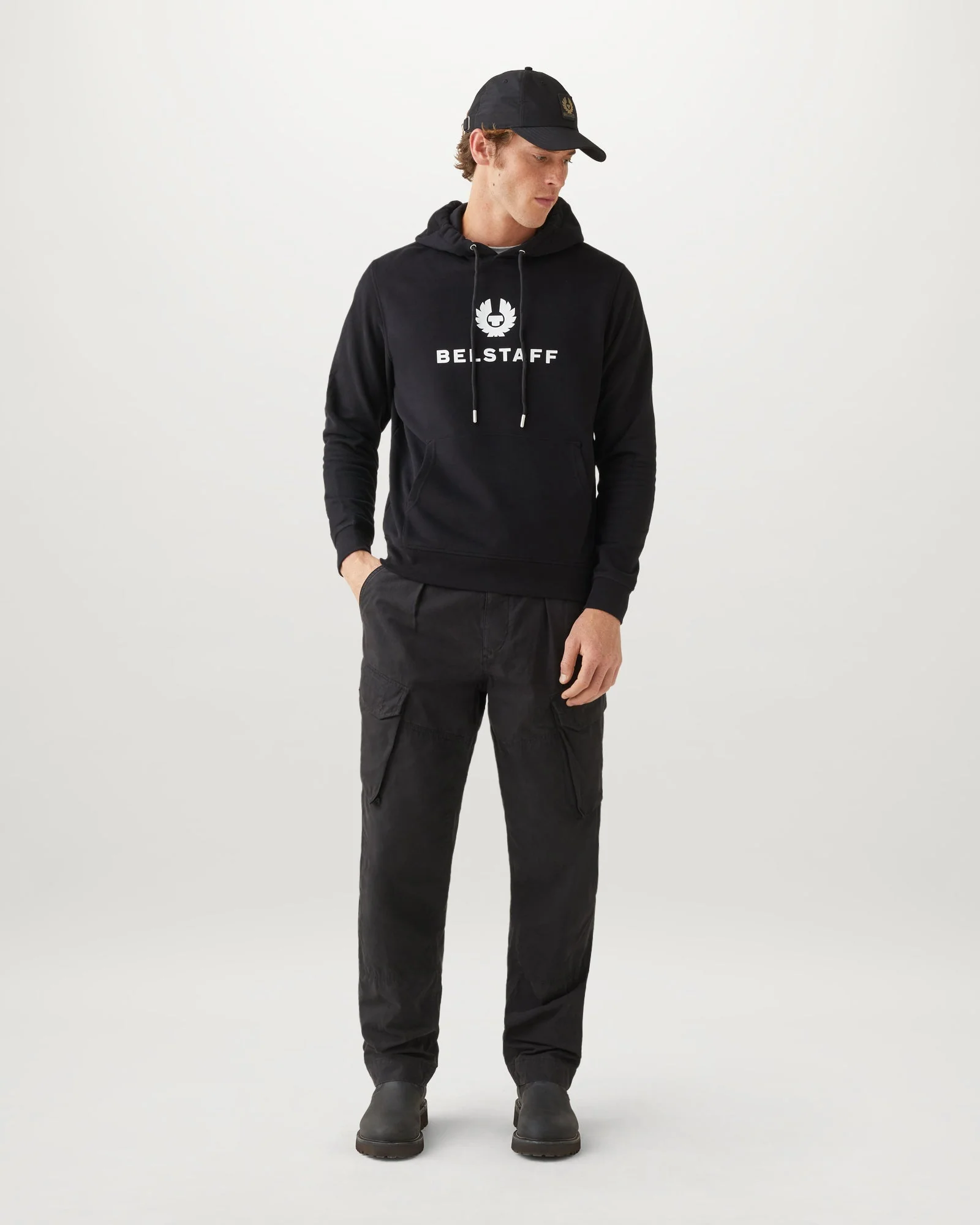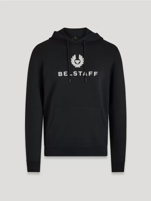 Men’s Cotton Fleece Belstaff Signature Hoodie In Black / Off White | Black & Offwhite