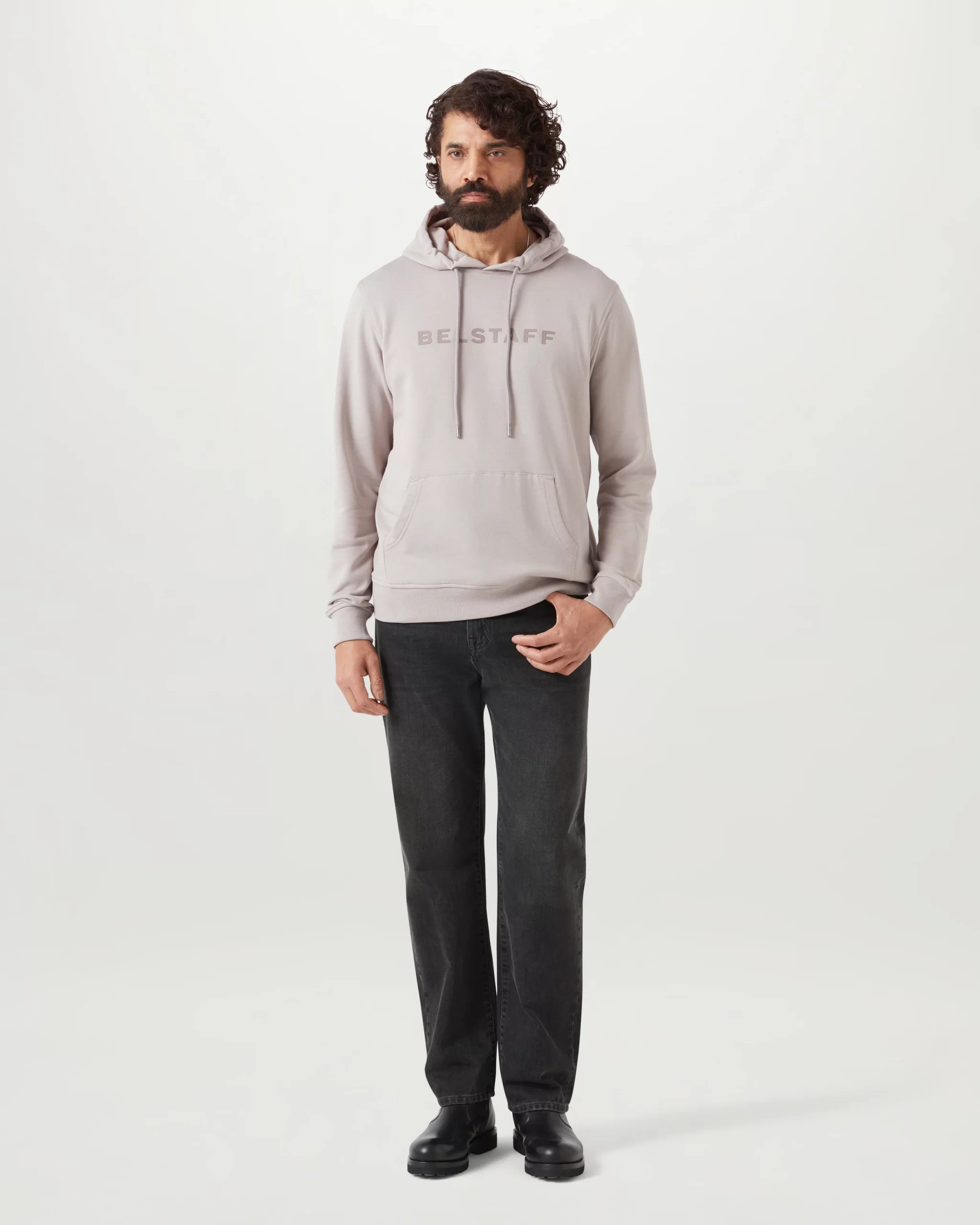 Men’s Cotton Fleece Belstaff Signature Hoodie In Pumice | Pumice